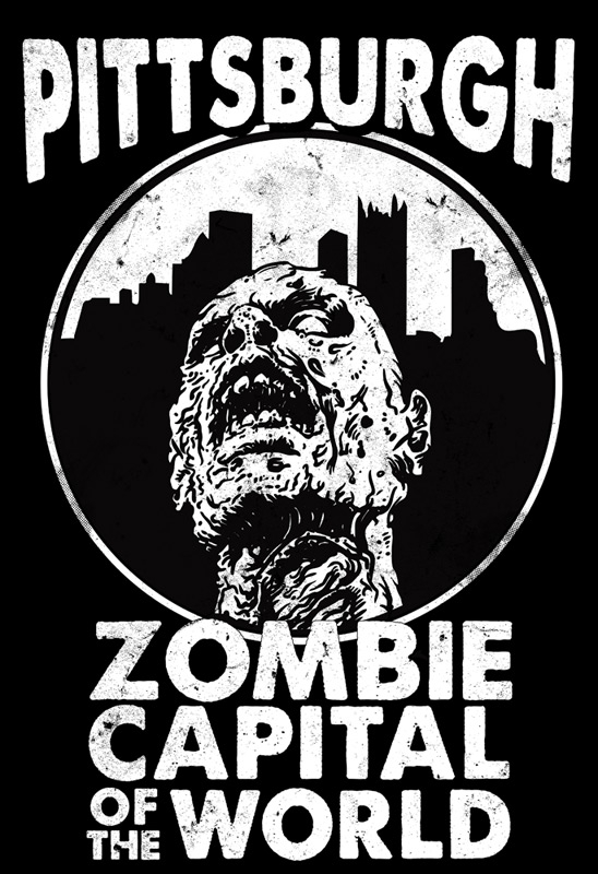 Claiming fame to the the creation of the modern horror film and the "Romero Zombie", i.e. the Living Dead Flesh Eaters that the world knows as "zombies", Pittsburgh, PA is and will always be "The Zombie Capital of the World".Whether from Pittsburgh, or just want to appear that you are, this shirt will proclaim to the world the fame that comes from our city.